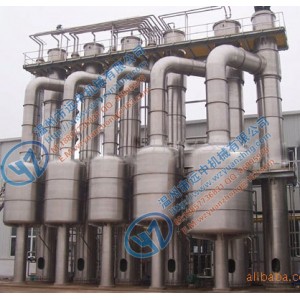 五效降膜蒸发器由五体加热器,五体蒸发分离器、预热器、混合式冷凝器(列管表面式冷凝器)、热压泵、真空泵、物料泵、平衡槽、电控箱、工作台及所有管路、阀门等组成。应用于果葡糖浆、葡萄糖、淀粉糖、低聚糖、饴糖、山梨醇、鲜奶、果汁、维C、麦芽糊精等水溶液的浓缩。并可广泛用于味精、酒精、鱼粉等行业的废液处理。