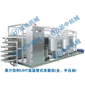 物料--→平衡罐___45~55℃__→加热___95℃__→过热___120℃(120保温15s)__冷却___95℃___55~65℃(出口温度根据工艺要求设置冷却段可调节)→灌装(或回流)工艺流程可根据物料处理要求不同而作一定的相应调整。(本机中不包括CIP清洗、均质等装置)